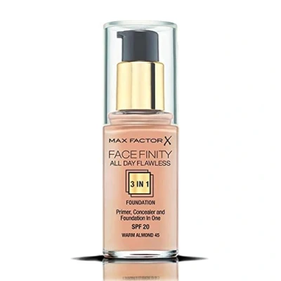 Max Factor Facefinity 3 in 1 All Day Flawless Liquid Foundation, SPF 20 45 Warm Almond, 30 ml