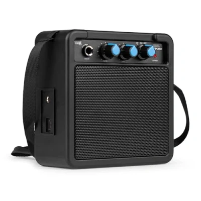 Enjoy up to 5 hours of playtime wherever you go with this battery-powered amplifier. Lightweight and compact, it travels easily to lessons, jam sessions, or street gigs. No power outlet needed for practice or performing. Easily switch on the built-in overdrive for punchy, authentic tones. Volume and tone controls let you shape your sound, making this amp a versatile choice for beginners, kids, or music students wanting reliable control. A handy belt clip and included shoulder strap mean you can play freely—perfect for buskers or anyone who wants to walk and play at the same time. Great for outdoor use or practice sessions on the move. Plug in via the 6.3mm input jack or use the 3.5mm headphone out for silent practice. Pair with a wireless guitar system for a completely cable-free experience—ideal for convenient jam sessions and travel. With just 0.45 kg weight and measuring 140 x 140 x 80 mm, this mini guitar amp fits easily in a gig bag or backpack. Designed as a practice guitar amp for beginners, kids, and those wanting simple, portable music gear.