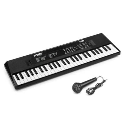 MAX KD54 54 Key Portable Electronic Keyboard for Kids with Built in Rechargeable Battery, Wired Microphone, 8 Tones, 5 Rhythms Beginner Music Instrument, Black, Up to Hours Playtime