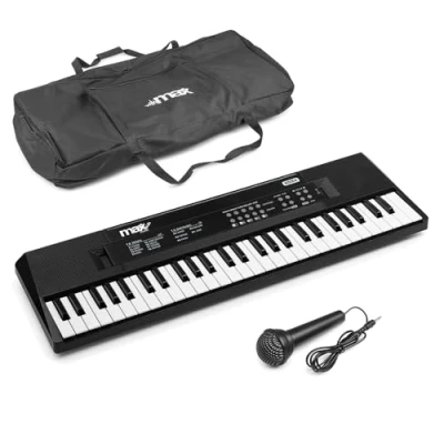 Complete beginner keyboard kit features a 54-key portable keyboard with built-in rechargeable battery for up to 8 hours’ play, plus a sturdy, padded carry case for safe, easy transport to lessons or sessions Designed to help kids and new learners enjoy music, this keyboard set produces vibrant sound with duo speakers, hands-on controls, and robust construction, combining usability and fun in one package Play unplugged anywhere—battery operation means maximum freedom at home or on the go. Set up instantly, inside or outdoors, and confidently hit the keys or sing along with the included wired microphone Creative features include 8 tones, 5 rhythms, multiple percussions, six demonstration songs, record/playback functions and more. Intuitive layout encourages experimenting and musical discovery The dedicated transport case shields against dust, bumps and scratches. Take your keyboard safely between home, school, or friends. Makes an ideal starter kit for kids or anyone inspired to learn piano