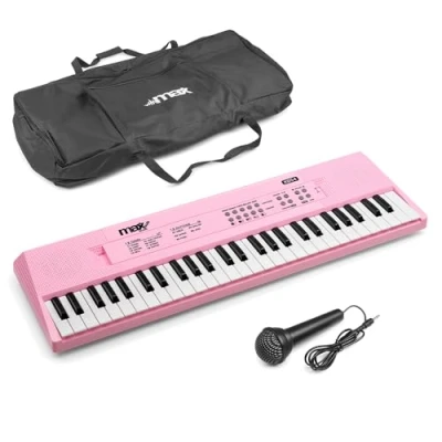 MAX KD54P 54 Key Portable Electronic Keyboard Kit with Microphone & Protective Carry Case Pink
