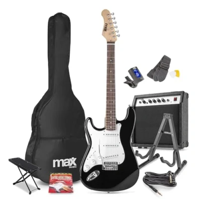 Complete left handed electric guitar package offering a comfortable, reliable setup for new players – features a 21-fret guitar, powerful 40W amplifier, and essential accessories for immediate play. Integrated with a sturdy guitar stand and an adjustable metal footrest, this pack ensures an ergonomic and organised practice space, boosting comfort and focusing beginners on developing skills. All-in-one bundle includes a clip-on tuner for accurate tuning, spare string set, durable gig bag, guitar strap, picks and necessary adjustment tools, giving learners everything required from day one. 40W amplifier with 6" speaker produces rich clean tones and classic rock crunch; easily adjust sound with dedicated tone, volume controls and a 5-way pickup selector, suitable for multiple music genres. Lightweight, foldable stands and robust accessories ensure reliable, on-the-go practice and storage. Ideal for left handed kids or adult beginners, supported by materials usually found in higher-priced kits.
