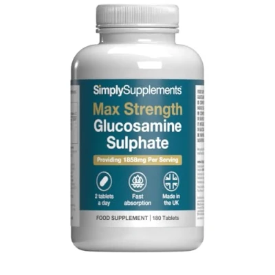 MAXIMUM DAILY SERVING OF GLUCOSAMINE SULPHATE: Each serving delivers 1858mg of Glucosamine Sulphate 2KCl, providing 1100mg of glucosamine base, offering a high daily serving within food supplement guidelines. DESIGNED FOR ACTIVE LIFESTYLES: Ideal for those with physically demanding routines, including fitness enthusiasts and individuals looking to stay active as part of their everyday lifestyle. MARINE-SOURCED & HIGH PURITY: Derived from premium marine sources and carefully processed to ensure a high-purity, consistent glucosamine supplement. Each batch is quality tested for reliability. CONVENIENT TWO-TABLET DAILY DOSE | 180 TABLETS: Just two easy-to-swallow, coated tablets per day provide the full daily serving. One tub contains 180 tablets, with a breakline on each tablet for easy splitting and added convenience. UK MADE GMP QUALITY ASSURED: Manufactured in the UK to strict Good Manufacturing Practice (GMP) standards, with rigorous quality control and testing to ensure consistent quality, safety, and reliability in every batch.