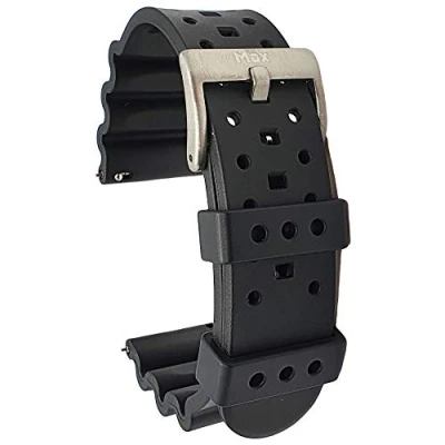 Max Ventilated Silicone Watch Straps and Smartwatch with Stainless Steel Buckle, Quick Release Replacement Bands 20mm 22mm (20mm, Black)