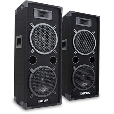Deliver full, punchy sound at every event with this integrated passive speaker pair – 1600W combined power, dual 8" woofers, piezo tweeter horns and robust carpeted enclosures for DJ, PA or party setups. Clear, high-frequency response and thumping bass deliver an immersive audio experience—ideal for mobile DJs, music venues and karaoke events needing loud, balanced, distortion-free sound for crowds and parties. Designed for portability with convenient side handles and lightweight build; this speaker pair moves easily between gigs, making transport and installation quick for event organisers and mobile entertainment. Multiple connectivity options with two Jack inputs plus clip terminals, allowing easy pairing with amplifiers or mixers; setup remains simple and quick without specialised cables, fitting a wide range of PA systems. Durable acoustic carpet finish protects against dings and scuffs, giving DJs, clubs, and venues a long-lasting, professional-looking solution that keeps up with regular use while boosting reliability and value.