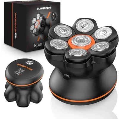 【7D REMOVABLE MAGNETIC HEAD SHAVER】MAXGROOM Head shavers for men with premium large-diameter floating blades, this upgraded head shaver glides along head contour, providing a faster, closer shave for a clean, polished finish. 【IPX6 WATERPROOF & EASY TO CLEAN】MAXGROOM head shavers for bald men designed for seamless cleaning, the IPX6 waterproof head shaver includes magnetic detachable blades for quick and thorough rinsing. Shave confidently in the shower or on the go. 【TYPE-C CHARGING & LED DISPLAY】MAXGROOM men's electric shavers supports various USB devices for charging. 2.5 hours of fast charging can provide 90 minutes of working time. Head shavers for men features an LED display that allows you to easily check the battery level. (Note: Please check if charging is required before using the shaver) 【DUAL-SPEED SETTINGS MENS HEAD SHAVER】MAXGROOM head shaver featuring two adjustable speed levels, this electric razor for men adapts to different hair types and thicknesses. Ensuring a smooth shave. 【ERGONOMIC DESIGN HEAD SHAVER FOR BALD MEN】MAXGROOM bald head shaver designed with an ergonomic handle, this head shaver offers a secure, comfortable grip for easy handling during both wet and dry shaving. 【AFTER-SALES SUPPORT】MAXGROOM is a company specialising in mens head shaver, if you have questions or concerns , please contact .MAXGROOM has a professional technical and after-sales team to serve you.