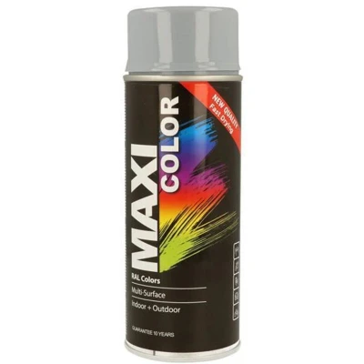 MaxiColor is a decorative paint for use on treated and untreated wood, metal, aluminium, glass stone and plastic. It offers excellent coverage and adhesion with minimal drips. Suitable for use indoors or outdoors. Available in a wide range of RAL colours. 1 x MaxiColor Spray Gloss Silver Grey RAL7001 400ml
