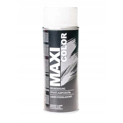 Maxi Color White Primer 400ml Fast drying spray for metal, wood & plastic. Smooth finish, great adhesion, ideal indoor/outdoor use. Prepares surfaces topcoat application.