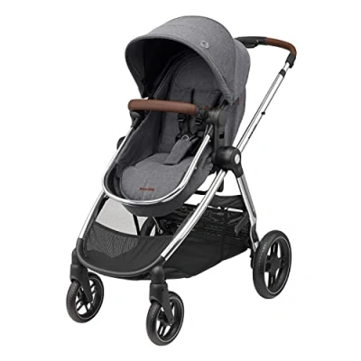 BABY PUSHCHAIR: this toddler pushchair is designed to keep your baby comfortable from birth up 4 years old (up to 22 kg) - the reversible 2-in-1 seat makes it super-quick and easy to switch from parent-facing to street-facing 2-IN-1 SEAT: the pram body with an integrated real mattress transforms quickly and easily into a comfy and reclining seat, that you can adjust at the most comfortable position according to your baby's age and needs EASY TO MANOEUVRE: its shock-absorbing 4-wheel suspension and puncture-proof wheels can tackle any city street or step, while at the same time, delivering a smooth ride for your little one EASY FOLDING: due to its quick and compact one-hand folding system, the Zelia 3 Luxe is perfect for busy parents who are always on the go! PREMIUM FABRICS: Zelia 3 Luxe is a special edition pushchair with a chrome chassis, luxurious embroidery, soft twill fabrics and deluxe vegan leather - she feels as good as she looks! INCLUDED ACCESSORIES: extendable UPF 50+ Canopy with see-through ventilation window; Spacious XXL basket (>10kg); pivotable bumper bar, waterproof rain cover and boot cover; car seat adapters TRAVEL SYSTEM: Zelia 3 Luxe transforms into a next level travel system when combined with a compatible baby car seat (Maxi-Cosi Pebble Pro, Pebble 360 and CabrioFix i-Size) and carrycot - all sold separately