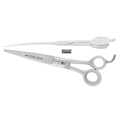 Stainless steel curved scissors wide Rose Line. Features: 19 5 cm - 94 g Curved scissors in satin stainless steel micro-teeth on one blade With finger cots and fixed thumb. Technical specifications: Total length: 19