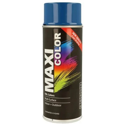 MaxiColor gloss Genetian Blue RAL5010 Spray 400ml Fast drying, high finish for metal, wood & plastic. Offers vibrant color, smooth coverage, and long lasting indoor/outdoor protection.