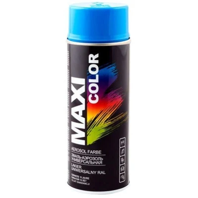 1 x MaxiColor Spray Gloss Sky Blue RAL5015 400ml MaxiColor is a decorative paint for use on treated and untreated wood, metal, aluminium, glass stone and plastic. It offers excellent coverage and adhesion with minimal drips. Suitable for use indoors or outdoors. Available in a wide range of RAL colours.