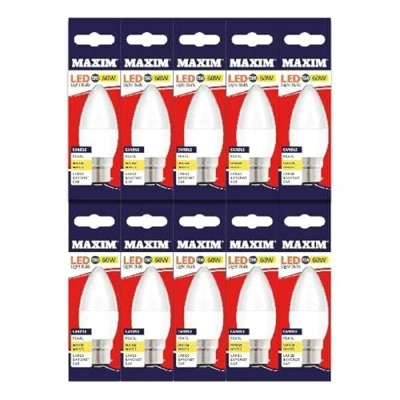 Maxim LED Candle Bayonet Cap (Daylight White) 7.5watt (60watt) 806 Lumen (Pack 10) 60MLCBCDL5X10