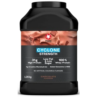 ALL-IN-ONE WHEY PROTEIN - Our high-quality, full-of-flavour protein shakes are jammed-packed with up to 31g of protein per serving with an added benefit of 5g per serving of Creatine Monohydrate to support exercise performance PREMIUM WHEY - Whey protein powder is filtered from the cheese-making process and is a readily digestible protein. Our Cyclone protein powder is filtered further to be low-fat, giving you 33% of whey protein isolate without any impurities UNBELIEVABLE TASTE - Cyclone is free from artificial colours, flavours, sugars and thickeners. With natural ingredients and flavourings to provide unbelievable taste. For best results, mix 60g of protein powder with 250-300ml of water and shake well DELICIOUS FLAVOURS - We have 4 different flavours to choose from, each delicious from the first sip, to the last - Banoffee, Chocolate, Strawberry and Vanilla. Perfect to drink wherever you are MAXINUTRITION - A brand built on sports science and nutrition, MaxiNutrition has been making high-quality sports nutrition products from carefully selected ingredients that work. Get the max out of your nutrition to achieve your best!