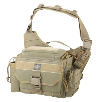 Category name: gear-bags-and-accessories Country of origin: Vietnam Brand name: Maxpedition International products have separate terms, are sold from abroad and may differ from local products, including fit, age ratings, and language of product, labeling or instructions. Khaki 1050-Denier water and abrasion resistant light-weight ballistic nylon fabric Teflon fabric protector for grime resistance and easy maintenance High strength zippers and zipper tracks UTX-Duraflex nylon buckles for low sound closures Main compartment fits A4 sized pad Multiple external loop fields for patches Multiple attachment points for adding pouches & accessories Oversized buckle / hardware for durability Ergonomic design so bag sits comfortably on body Three padded islands of breathable material for improved air circulation Better for RIGHT side carry.