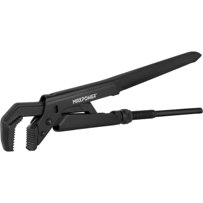 General description The MAXPOWER Swedish Pipe Wrench is a versatile tool designed for plumbers and homeowners. Featuring a 90° angled jaw, this wrench is ideal for accessing tight spaces and corners, making it perfect for front-end alignment, tie rods, and plumbing fittings. With a maximum jaw opening of 40mm (1-9/16"), it can effectively grip various objects, including square items like hex nuts. Technical specifications Overall length: 300mm (12") Max jaw opening: 40mm (1-9/16") Pipe clamping diameter: 1" Weight: 0.65kg (650g) Material: Chrome Vanadium Steel Item model number: MXP152 Package dimensions: 33 x 6 x 2.5 cm Usage Ideal for gripping square objects and plumbing fittings Self-locking teeth provide a firm grip with high turning resistance Adjustable clamping width with an undetachable adjusting nut