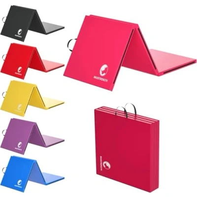 SOFT AND COMFORTABLE YOGA MAT - Our exercise mat creates a comfortable spot to do crunches, yoga, pilates and other floor exercises with the thick folding panel gymnastic mat. This foam floor mat folds to 1/3 the size with a sewn in handle for easy storage and transport that makes it a perfect travelling exercise equipment mat. ECO-FRIENDLY YOGA MAT WITH EPE FOAM - Maxstrength thick yoga mat is manufactured with excellent high-density environment-friendly EPE foam which delivers strong, durable and better elasticity for long-lasting use. This gym yoga mat is fabricated with toxic free & waterproof solidified PU leather cover that holds characteristics such as non-slippery surface, water-resistant material, and soap friendly for easy clean and washes. STRONG BASTING STITCHED & MULTI-USABLE YOGA MAT -Our yoga exercise mat comes with basting stitches that are reputed to resist yoga mat's leather from a cut, break and tear. We strengthen the yoga mats with double stitching on all sides at every single joint to enhance its durability and lifespan. It is proper for kids and toddlers to play and crawling on it and is an excellent exercise mat for yoga apprentices, aerobic apprentices, athlete, schoolhouse and gymnastics. EASILY ATTACHABLE TO ONE OR MORE YOGA MATS - Our exercise mat comes with an exceptional feature than any other yoga mat to have a hook and loop velcro on all sides that allows you to combine one more mat together to have a larger soft foam mat surface for easy and safe training for gymnastics, acrobatics, aerobics and athletes.
