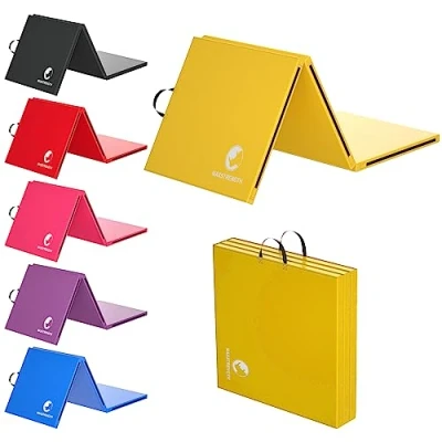 SOFT AND COMFORTABLE YOGA MAT - Our exercise mat creates a comfortable spot to do crunches, yoga, pilates and other floor exercises with the thick folding panel gymnastic mat. This foam floor mat folds to 1/3 the size with a sewn in handle for easy storage and transport that makes it a perfect travelling exercise equipment mat. ECO-FRIENDLY YOGA MAT WITH EPE FOAM - Maxstrength thick yoga mat is manufactured with excellent high-density environment-friendly EPE foam which delivers strong, durable and better elasticity for long-lasting use. This gym yoga mat is fabricated with toxic free & waterproof solidified PU leather cover that holds characteristics such as non-slippery surface, water-resistant material, and soap friendly for easy clean and washes. STRONG BASTING STITCHED & MULTI-USABLE YOGA MAT -Our yoga exercise mat comes with basting stitches that are reputed to resist yoga mat's leather from a cut, break and tear. We strengthen the yoga mats with double stitching on all sides at every single joint to enhance its durability and lifespan. It is proper for kids and toddlers to play and crawling on it and is an excellent exercise mat for yoga apprentices, aerobic apprentices, athlete, schoolhouse and gymnastics. EASILY ATTACHABLE TO ONE OR MORE YOGA MATS - Our exercise mat comes with an exceptional feature than any other yoga mat to have a hook and loop velcro on all sides that allows you to combine one more mat together to have a larger soft foam mat surface for easy and safe training for gymnastics, acrobatics, aerobics and athletes.