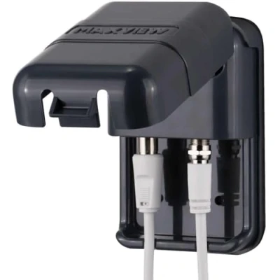 Twin weatherproof socket with 'F' and coaxial connector Specially designed to provide a neat, external weatherproof cable entry point(s) into any vehicle 3m cable length Ideal for all types of portable satellite systems and touring aerials Unobtrusive design