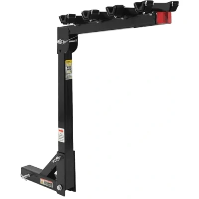 Secure Bike Transportation: Safely transport up to 4 bikes with ease. The rack's towing capacity is 150 lbs and includes a hitch pin for secure attachment. An added reflector enhances safety during travel Convenient Swing-Down Feature: The swing-down feature provides effortless access to the rear of your vehicle, ensuring convenience when needed. Ideal for vans, SUVs, pickup trucks, and sedans with receiver hitches Easy Installation: Installing the MaxxHaul Towing Products 70210 Deluxe 4-Bike Hitch Mount Rack is a breeze and takes just minutes. The support arms, equipped with adjustable hold-down straps, firmly secure and transport your bikes Broad Hitch Compatibility: This rack fits 2" x 2" hitch receivers, offering versatile compatibility with a variety of vehicles Durable Construction: Built from rigid all-steel construction and powder-coated for durability, this rack is designed for longevity. The adjustable bike cradle with hook and loop straps ensures secure transportation Compatibility Note: Please note that the 70210 Bike Rack is designed for bikes with a horizontal top bar frame. For different style bike frames, the addition or installation of a horizontal crossbar may be necessary (not included) Weight Limit and Reflector: With a towing capacity of 150 lbs, the rack includes a hitch pin and reflector for added safety Important Note: Due to the increased distance between the rear bumper and the axle on trailers or RVs compared to cars or SUVs, using bike racks and cargo carriers in this scenario is not advisable Bikes mounted on RV's, trailers, fifth-wheels may experience increased bouncing, swaying, and stress. Always use tie downs and straps during transport for added safety