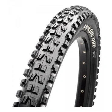 For when grip is everything. The Maxxis Minion DHF is a mountain bike tyre that combines a classic, hard-to-beat tread pattern with extra grippy 3C Maxx Grip triple compound rubber. This gives you DH levels of grip without the weight penalty of a dual ply tyre. The Minion DHF was designed for the often loose and muddy conditions of aggressive all-mountain terrain. The DHF incorporates ramped knobs for low rolling resistance and channel-cut knobs to increase gripping edges, giving straight-line control and precise cornering. Key Features: Tread: Directional, ramped knob designConditions: Loose over hard, Medium, Loose, WetCornering Control: 3Rolling Efficiency: 3Compatibility: Front and rearTPI: 60Bead: FoldingPly Construction: SingleSidewalls: EXO protectionCompound: 3C Maxx GripTubeless: TR Tubeless ReadyMax PSI: 6027.5"x2.50" Technology Maxx Grip: This is the grippiest Maxxis 3C compound.3C MaxxGrip uses the softest rubber compounds to offer the ultimate in grip and slow rebound properties for unparalleled traction in downhill applications. Tubeless Ready: Tubeless tyres give the rider with many benefits: the ability to run lower air pressures, which improves traction; lower rolling resistance when compared to a tube-type tyre; and less chance of flatting since there is no tube. Maxxis Tubeless Ready (TR) tyres provide the benefits of a UST tubeless tyre without the weight penalty. Our TR tyres use a standard casing and require the use of a liquid sealant in order to make them airtight EXO: An extremely cut-resistant and abrasion-resistant material added to the sidewalls of select mountain tyres. This densely woven fabric is also lightweight and highly flexible, ensuring that the performance of the tyre remains unaffected. Choose EXO Protection for exceptionally rocky, treacherous trails where the chance of sidewall cuts and abrasions is high.