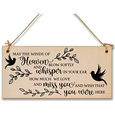 May the winds of Heaven Blow Sympathy Memory Handmade Wooden Hanging Wall Plaque Miss You Sentimental Gift