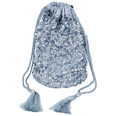 Maya Deluxe Women's Handbag Ladies Sequin Bag for Bridesmaids Sparkling Drawstring Coin Purse Pouch Evening Prom Party Clutch, Dusty Blue, One Size