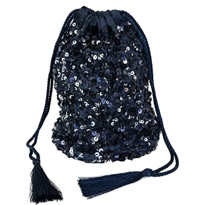 Maya Deluxe Women's Handbag Ladies Sequin Bag for Bridesmaids Sparkling Drawstring Coin Purse Pouch Evening Prom Party Clutch, Navy, One Size