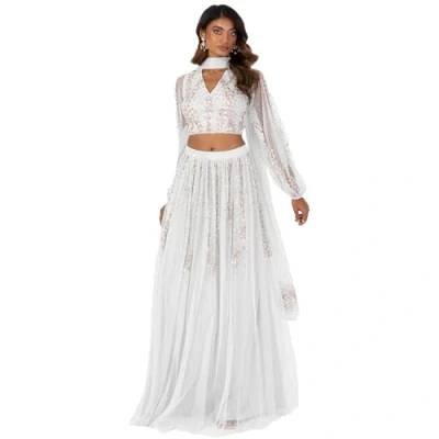 EMBELLISHED COORD SET FOR WOMEN- Presenting adorable sequined or embroidered traditional Indian lengha set. Available in 6 UK sizes- 6 UK (34 EUR), 8 UK (36 EUR), 10 UK (38 EUR), 12 UK (40 EUR), 14 UK (42 EUR), 16 UK (44 EUR) and a range of colourways: cream, grey, black, pink and navy. VARIETY OF STYLES- Elevate your style with our exquisite embroidered and sequin embellished lengha. Our skilled artisans have meticulously adorned this lehenga with intricate embroidery or seqiuns, featuring modern designs. You can choose between short and long sleeved, V neckline, crew neck or bardot. WEDDING GUEST OUTFITS FOR WOMEN- Feel comfortable in any situation in this elegant set. The A-line silhouette of the long skirt allows easy movement. Doesn’t matter if you are dancing or sitting, you will always feel cosy and relaxed. A-shape and high waist will highlight your curves and will look great on all body types. MATERIAL COMPOSITION- Crafted from premium fabrics our Amazon lengha exudes opulence and comfort. These materials offer a luxurious drape and a regal feel. You'll appreciate the fine quality and craftsmanship that goes into creating a lengha that's both elegant and easy to wear. ONE SET, DIFFERENT OCCASIONS- Our lehnga will be perfect for various occasions. Doesn’t matter, if you are a wedding guest, maid of honour, bride or you are looking for an elegant outfit to celebrate Diwali or Eid. These lenghas will be ideal for prom, engagement, walima, mehendi, roka, formal events, party, garba and all special occasions.