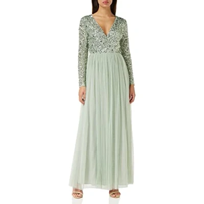 EMBELLISHED DRESSES FOR WOMEN- Presenting adorable sequin finished long sleeve dresses. Available in 12 UK sizes- 6 UK (34 EUR), 8 UK (36 EUR), 10 UK (38 EUR), 12 UK (40 EUR), 14 UK (42 EUR), 16 UK (44 EUR), 18 UK (46 EUR), 20 UK (50 EUR), 22 UK (50 EUR), 24 UK (52 EUR), 26 UK (54 EUR), 28 UK (56 EUR), 30 UK (58 EUR) and a range of colours green lily, purple, navy black and taupe blush. Choose a favourite one for yourself and your bridesmaids. MAXI EVENING DRESS- Features a chic V neckline and a floor sweeping soft tulle skirt that flairs from the waist giving the dress a romantic finish. This dress for women has a shimmery, hand sewn sequin embellishment, making you feel like a star. The evening gown is finished with an exposed zipper. A-SHAPE DRESS FOR LADIES- Feel comfortable in any situation in the A line cut and empire waist. The loose bottom of the dress will make your moves easy to make. Doesn t matter if you are dancing or sitting, you will always feel cosy and relaxed. A-shape and high waist will highlight your curves and will look great on all body types petite, regular or plus size. MATERIAL COMPOSITION- This cocktail ladies dress is made from 100 % polyester with maxi length tulle overlay. The top is decorated with hand sewn sequins that are beautifully shining and give you a romantic vibe. ONE DRESS, DIFFERENT OCCASIONS- This ball gown will be perfect for various occasions. Doesn t matter if you are a wedding guest, maid of honour, or looking for a dress for graduation, sixth-grade prom, formal evening parties, communions, christening, or simply a maternity photography shoot.