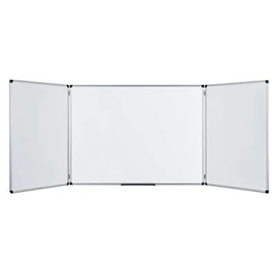 AmazonGreat for displaying more information with less space; Unfolds to reveal 3 whiteboard surfaces; Perfect for hiding sensitive information behind screens; Magnetic Lacquered steel surface; Pen tray and wall fixings supplied.