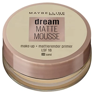 Foaming foundation with matte powder finish for a flawless complexion, UV protection SPF 18, suitable for normal to oily skin Long-lasting matte and even complexion, perfect coverage of redness, impurities and imperfections Apply make-up from the centre to the outside of the cleaned face with a sponge or fingers Breathable foam texture for perfect matte coverage, non-greasy, non-comedogenic, dermatologically tested, manufactured according to EU regulations Box contents: 1 x Maybelline New York Dream matte mousse foundation, colour: No. 30 sand, made in Italy