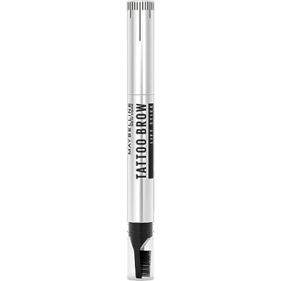 Easy eyebrow shaper lifts and sculpts brows in a swipe, Natural-looking brows A naturally tinted brow finish and all-day wear Step 1: Lift brows into place using lifter brush. Step 2: Tint and sculpt brow hairs with wax stick. Waterproof formula, Can be removed easily with makeup remover Contents: 1x Maybelline Tattoo Brow Lift Stick, Lift, Tint & Sculpt Brows, All day wear, Black Brown