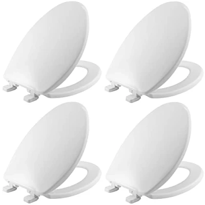 FEATURES THAT ENHANCE YOUR HOME: 4-Pack of soft close seats will keep your home quiet and safe by eliminating loud noises and pinched fingers; hinges never loosen for a secure toilet seat that won’t wiggle SLEEK, STYLISH DESIGN: Smooth contours and a refined shape complement both modern and classic bathrooms with a clean, crisp shade of white; this seat adds practical functionality while elevating the look of your space QUICK & EASY INSTALLATION IN MINUTES: No need to hire professional help, confidently complete this easy DIY upgrade yourself in minutes; watch our installation video above for more detail BUILT TO WITHSTAND DAILY USE: This USA made plastic toilet seat was built to endure heavy usage for years without cracking, warping, chipping or staining, even in the busiest households; use gentle cleaners to preserve your finish COMPATIBLE WITH ALL ELONGATED TOILETS: This seat measuring 14.31” wide x 19” long fits all standard elongated toilets including American Standard, Kohler, Toto and more; watch our video above to learn how to measure, Weight: 6.76 pounds, Manufacturer: Bemis