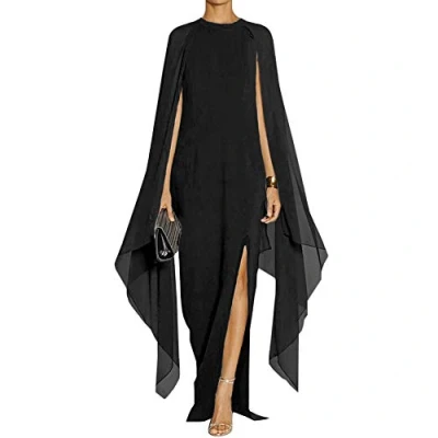MAYFASEY Women's Elegant High Split Flare Sleeve Formal Evening Gowns Maxi Dress with Cape, Black, S