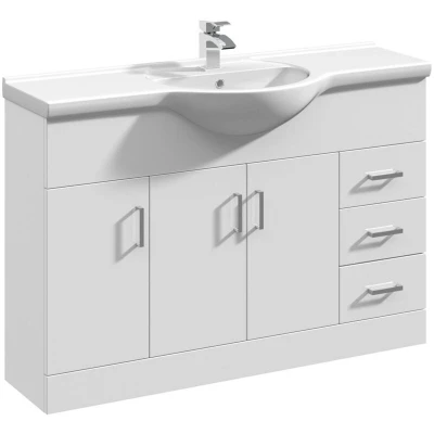 Mayford Gloss White 1200mm Vanity Unit and Curved Ceramic Basin VTY1200 Nuie