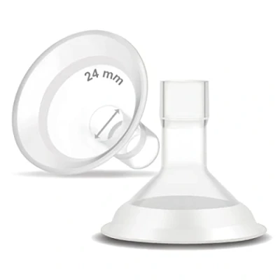 2x Two-Piece Breastshield (24 mm, suitable for mothers with nipple_diameter after pumping 22-23 mm). Compatible with all Medela pumps (Pump in Style with MaxFlow Pro Pro+, Pump in style, Lactina, Symphony, Swing, Mini Electric, FreeStyle, Swing Maxi, Sonata and Harmony, Freestyle flex. Also compatible with Lansinoh SignaturePro SmartPump Manual Pump, replace Lansinoh Pump Parts, Lansinoh Flanges. US FDA registered medical device (No. D192540); Products are inspected by US FDA. Complies with US FDA and EU standards for containers that contact food and class II medical device; Test reports are online for your reference; Retail poly-bag packed; sealed by the manufacturer - Maymom, not original Medela parts Made of Bisphenol-A (BPA)/DEHP-free material. Can be cleaned with boiling water or water steam. Available in various sizes (15, 17, 19, 21, 22, 24mm) for purchase.