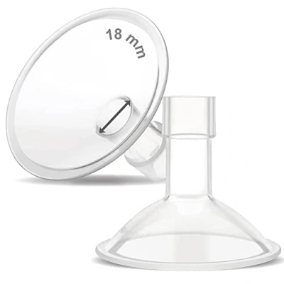 2x Two-Piece Breastshield (18 mm, suitable for mothers with nipple_diameter after pumping 16-17 mm) , Compatible with all Medela pumps (New Medela Pump in Style with MaxFlow, Pump in style, Lactina, Symphony, Swing, Mini Electric, FreeStyle, Swing Maxi, Sonata and Harmony, freestyle flex US FDA registered medical device (No. D192499); Products are inspected by US FDA. Complies with US FDA and EUstandards for containers that contact food and class II medical device; Test reports are online for your reference; Retail poly-bag packed; sealed by the manufacturer - Maymom, not original Medela parts Made of Bisphenol-A (BPA)/DEHP-free material and all components are steam safe for sterilization. Available in various sizes (10, 12, 13, 14, 15, 16, 17, 19, 21, 22, 24, 25, 26, 27, 29, 30, 32, 34, 36mm) for purchase.