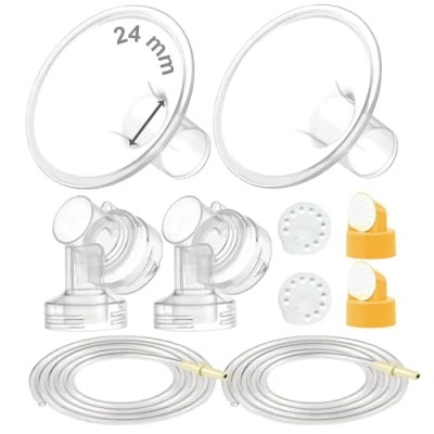 PROPER SIZE ENSURES COMFORTS: Maymom shield size refers to the INTERNAL DIAMETER (ID) of the SHIELD ENTRY that nippie will go into. This 24mm Breast shield is suggested for mothers with nippie diameter 22-23 mm AFTER pumping. The kit includes 2 separable shields (Standard Flange), 2 tubes, 2 Valves, 4 Membranes. All Parts are made by Maymom. Compatible with Medela Pump in style. NOT compatible with Medela Pump in Style with Maxflow, Swing Maxi, FreeStyle, Sonata, Symphony, Harmony. CONVENIENT TWO-PIECE BREASTSHIELD SYSTEM. The Breast shield(flange) is composed of a base connector (narrow neck) and a shield. You can easily take them apart for cleaning. Such an infrastructure is superior to fit almost every pumping bra on the market. Maymom offers various sizes of shields to accommodate most mothers. Size available for purchase: 13, 15, 17, 19, 21, 23, 24, 25, 27, 28, 30, 32mm. SAME SUCTION POWER AS OEM PARTS. All Maymom pump parts are interchangeable and compatible with medela personalfit breastshield. Maymom replacement parts are user friendly to be compatible with medela personalfit connectors, medela valve, medela membrane. The whole set is NOT original medela pump Parts, NOT original medela flange. MADE WITHOUT BPA. All products are inspected and in compliance with US FDA and EU standards for plastic that contacts food. Refer to Maymom test reports for detail. POLY-BAG SEALED AND PACKED FOR RETAIL. Sealed and made by the manufacturer, Maymom, who has 8 years of experience in making high quality breast pump parts for major brands of breast pumps. 100% compatibility and satisfaction guaranteed!