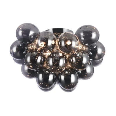 Bunchy ceiling lamp Balbo with playful design The ceiling light Balbo is an expression of extravagance and exclusive design. The lamp consists of a nickel-plated ceiling bracket surrounded by elegant glass spheres. The bunch of balls arranged in the shape of a bunch of grapes inspire thanks to the fascinating smoked glass look. The special tint of the glass creates an effective ambience. The playful design is especially inspiring in modern living rooms, making Balbo an excellent decorative eye-catcher in the living room.