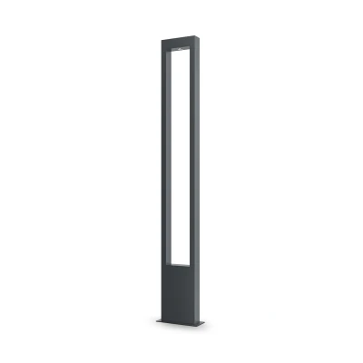 Body material— metal, shade — graphite. Protection against corrosion and temperature differences. High level IP65. Light source — LED module with neutral color temperature of 3000K. Trendy rectangular arch shape. The series includes outdoor lamps of various heights and power.