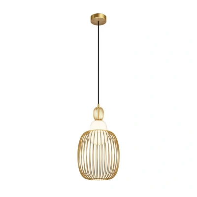 Maytoni Levitation Modern 25cm Wire Frame Pendant Ceiling Light Brass 1xG9 White Shade