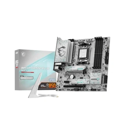 ULTRA POWER - SUPPORTS THE LATEST RYZEN 9000 PROCESSORS IN HIGH PERFORMANCE - The B850M GAMING PLUS WIFI employs a Direct 8 phases CPU power (60A, SPS) VRM for the AMD B850 chipset (AM5, Ryzen 9000 / 8000 / 7000) with Core Boost architecture FROZR GUARD - Excellent cooling features such as 7W/mK MOSFET thermal pads, extra choke thermal pads and an Extended Heatsink; Includes chipset heatsink, EZ M.2 Shield Frozr II, a Combo-fan (for pump & system) header (3A) DDR5 MEMORY, PCIe 5.0 x16 SLOT - 4 x DDR5 DIMM SMT slots enable excellent memory overclocking speeds (1DPC 1R, 8200+ MT/s OC); 1 x PCIe 5.0 x16 SMT slot (128GB/s) with Steel Armor supports cutting-edge graphics cards DOUBLE M.2 CONNECTORS - Storage options include 1 x M.2 Gen5 x4 128Gbps slot and 1 x M.2 Gen4 x4 64Gbps slot; Features EZ M.2 Shield Frozr II to prevent thermal throttling and EZ M.2 Clip II for EZ DIY experience CONNECTIVITY - Network hardware includes a latest Wi-Fi 7 module with Bluetooth 5.4 & 5Gbps LAN; Rear ports include USB 10Gbps Type-C and 7.1 HD Audio with Audio Boost