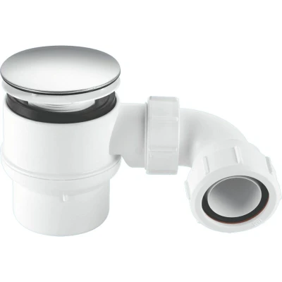 General description The McAlpine STW8M-95 is a 50mm water seal shower trap with a universal outlet, designed for use with standard 1.5" UK plumbing. It is suitable for most shower trays and enclosures, effectively preventing foul odours from escaping the drainage system. Constructed from high-quality materials, this trap ensures durability and long-lasting performance, while its stylish chrome-plated cover adds a modern touch. Technical specifications Water Seal: 50mm Thread: 1.5" BSP Available finishes: White or Chrome Plated Plastic, Chrome Plated Brass Supplied with: 95° Bend - BSP coupling nut x 1.5" Multifit Compatibility and accessories Suitable for shower trays with a 50mm waste hole Installation Easy to install with a low profile design, ideal for shallow shower trays Usage Removable trap body for easy cleaning and maintenance