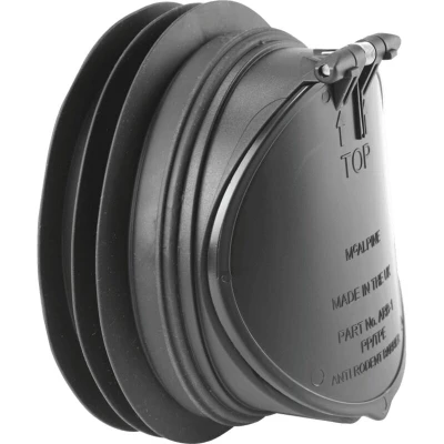 General description The McAlpine ARB-1 is a 4"/110mm Anti Back-Flow and Rodent Barrier Valve designed to prevent sewage or wastewater from flowing back into a building's plumbing system, which could lead to contamination and health hazards. This valve is particularly useful for properties located in areas with a high risk of flooding or where there is a risk of sewage or wastewater backing up into the plumbing system. It operates by allowing sewage or wastewater to flow out while preventing it from flowing back in. Additionally, the valve includes a rodent barrier to prevent rodents and other pests from entering the building through the plumbing system, which is crucial in areas where rodents are common, as they can carry diseases and cause property damage. Technical specifications Size: 4"/110mm Material: Not specified Compatibility and accessories Compatible with any McAlpine rigid or flexible WC connector with 4"/110mm rubber outlet seal Installation Can be installed horizontally
