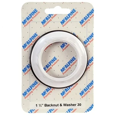General description The McAlpine 1 1/4" Backnut & Washer is a high-quality plumbing accessory designed for use with 1 1/4" diameter pipes. Made from durable materials, it is resistant to rust and corrosion, ensuring long-lasting performance. This product is essential for plumbing applications requiring a tight and secure connection, such as connecting a sink or basin waste pipe to a waste trap. It is easy to install and provides a secure, leak-free connection, making it a reliable solution for your plumbing needs. Technical specifications Diameter: 1.25" Material: White Plastic Other information Mounted on Card with Hanging Slot