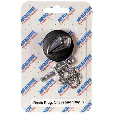General description The McAlpine Basin Plug Chain & Stay is a simple yet effective solution to keep your basin plug secure and in place. It consists of a chain with a stay that attaches to the back of the basin waste fitting, along with a plug that fits securely into the waste hole of your basin. The chain and stay prevent the plug from being lost or accidentally dropped down the drain, while also providing a convenient way to lift the plug out when you need to drain the basin. Made from durable materials resistant to corrosion and wear, this product ensures long-lasting performance and is a must-have accessory for any bathroom or washroom.