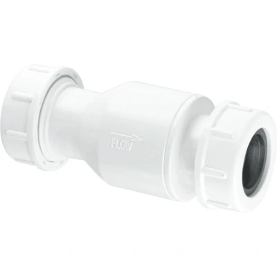 General description The McAlpine R28-NRV Non-Return Valve is a plumbing accessory designed to prevent the backflow of water or other fluids in a pipeline system. Its non-return function ensures that fluids can only flow in one direction, which helps to prevent contamination of potable water and protects plumbing fixtures from damage. This valve is particularly useful in applications where wastewater or other contaminated fluids are present. Technical specifications Universal connections: 19/23mm Material: High-quality, corrosion-resistant