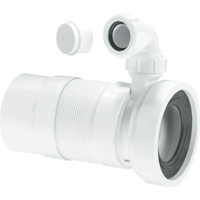 General description The McAlpine WC-F26PV is a straight flexible WC connector designed for connecting a WC pan to the soil pipe. It features a 97-107mm inlet for the WC pan and a 110mm plain end outlet for the soil pipe. Made from flexible PVC material, this connector allows for easy installation and adjustment. Additionally, it includes a 1.25" universal vent boss for connection to a soil vent pipe or an air admittance valve, providing ventilation to the drainage system and preventing pressure buildup and unpleasant odors. Technical specifications Inlet size: 97-107mm Outlet size: 110mm plain end Material: Flexible PVC Universal vent boss size: 1.25" Other information Available in 2 lengths Plain end outlet fits ring seal socket of 110mm soil or underground fittings 97-107mm inlet suits all pan spigots Independent tests prove no build-up of sediment in the flex Enables easy installation of WC pans in awkward situations
