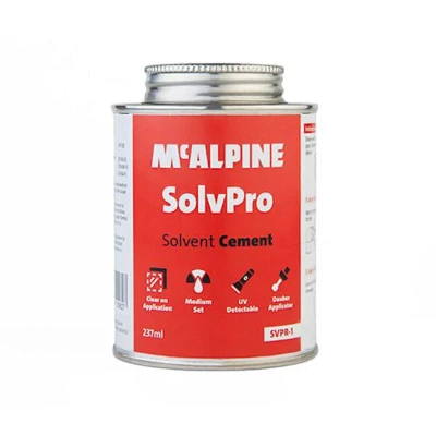 McAlpine SolvPro Solvent Cement, 237ml Medium Bodied PVC Adhesive with Dauber Applicator UV Detectable for Easy Inspection Fast Setting Bond Pipes & Fittings